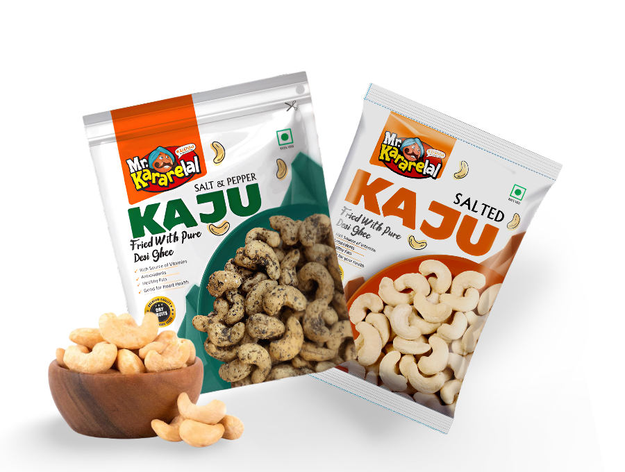 Mr. Karelal offers tasty and healthy snacks like Ghee fried Cashews, Roasted Pistachios, Roasted with Olive oil Makhana. All snacks are roasted in pure ghee and come in many flavors and pack sizes.